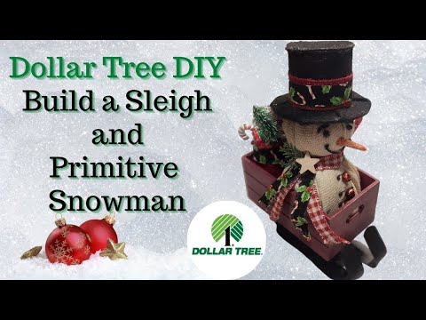 Full Tutorial How to Build Christmas Tabletop Sleigh and Primitive Snowman using Dollar Tree Supplies. Handmade Heirloom Doll featuring Whimsical Snowman.